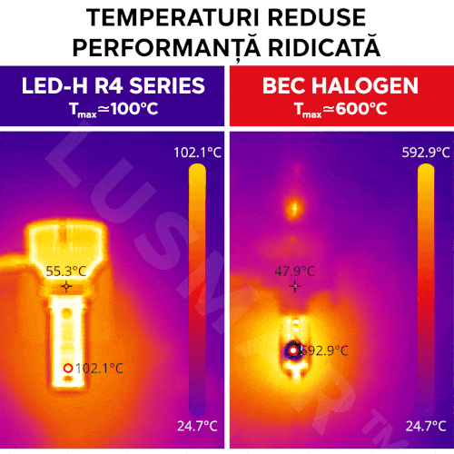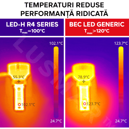 Față de becurile tradiționale halogen care au o durata de viață de până la 5.000 ore, becurile LED-H© R4 au o viață de 6x mai mare, până la 30.000 ore.